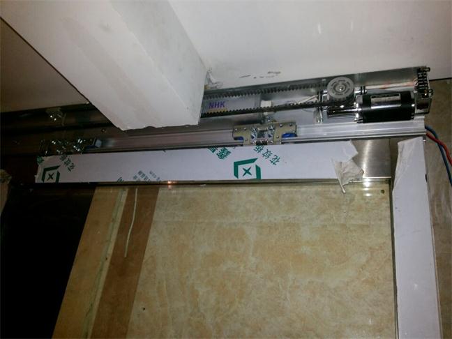 感應(yīng)探測器探測到有人進(jìn)入時,感應(yīng)探測器將收集信號,生成脈沖信號,其后脈沖信號傳給主控器,主控器判斷后通知馬達(dá)運(yùn)行,同時監(jiān)控馬達(dá)轉(zhuǎn)數(shù),以便通知馬達(dá)在一定時候加力和進(jìn)入慢行運(yùn)行。馬達(dá)得到一定運(yùn)行電流后做正向運(yùn)行,將動力傳給同步帶,再由同步帶將動力傳給吊具系統(tǒng)使門扇開啟;門扇開啟后由控制器作出判斷,如需關(guān)門,通知馬達(dá)作反向運(yùn)動,關(guān)閉門扇。