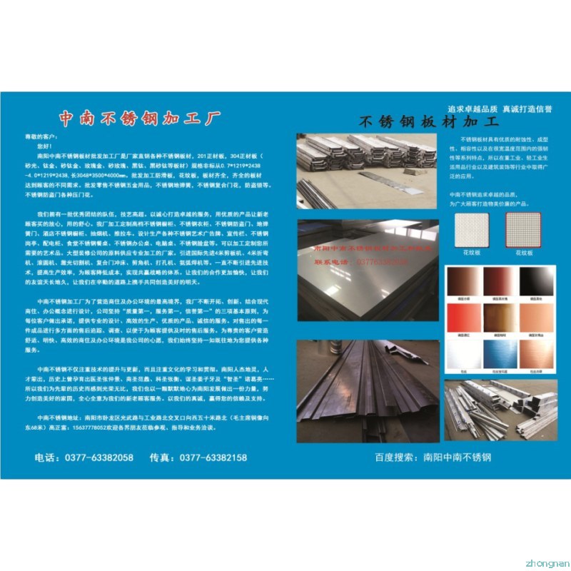 南陽中南不銹鋼板材批發(fā)加工廠