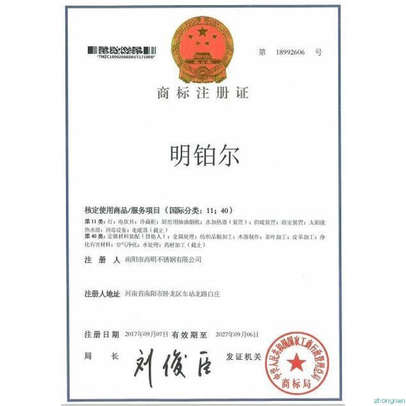 明鉑爾?國(guó)家商標(biāo)知識(shí)產(chǎn)權(quán)榮譽(yù)證