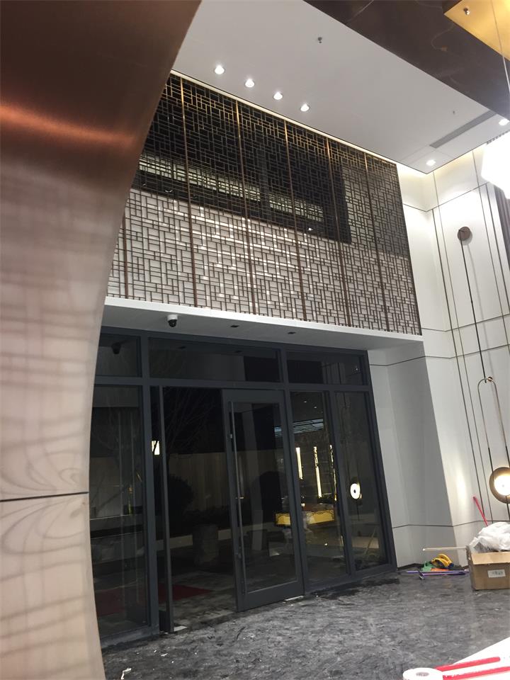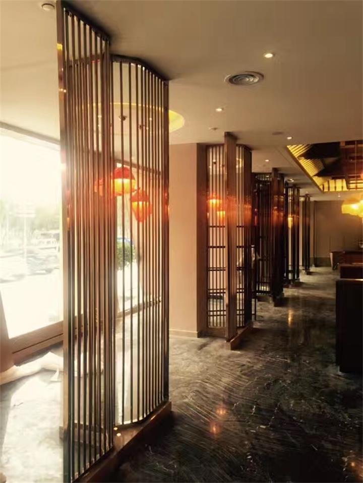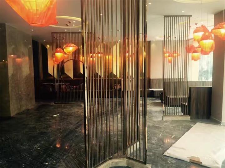 不銹鋼藝術(shù)屏風(fēng)隔斷造型,明鉑爾不銹鋼藝術(shù)工程。芒果酒店藝術(shù)不銹鋼工程。