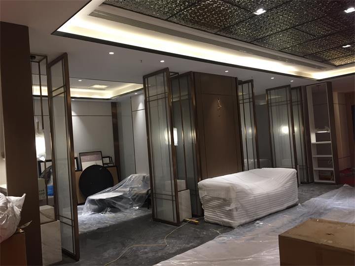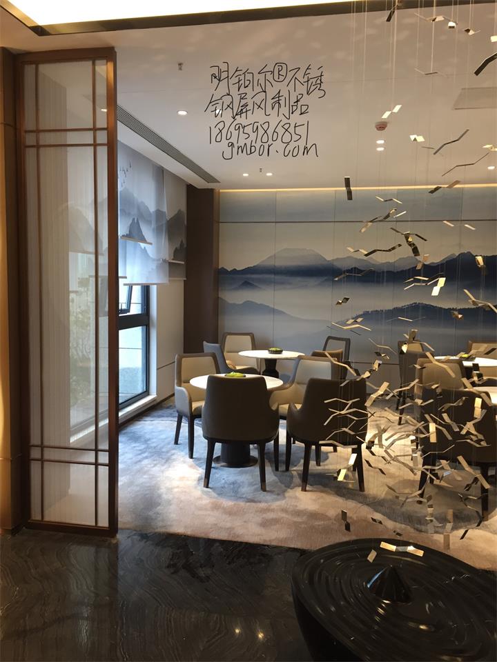 南陽(yáng)市高明不銹鋼有限公司,為南召青楓苑售樓部 專業(yè)定制不銹鋼藝術(shù)屏風(fēng)