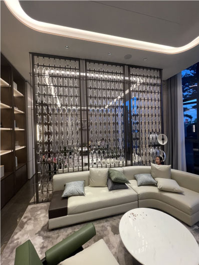 休息區(qū)的不銹鋼置物架和工藝屏風(fēng),為客戶(hù)提供更舒適的洽談環(huán)境