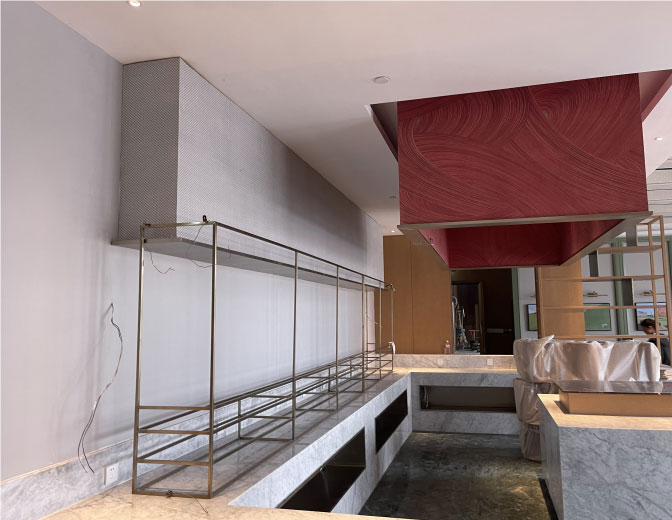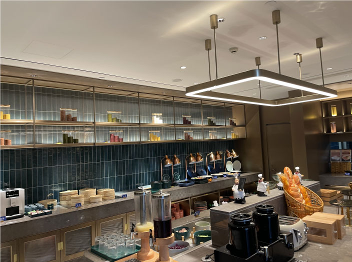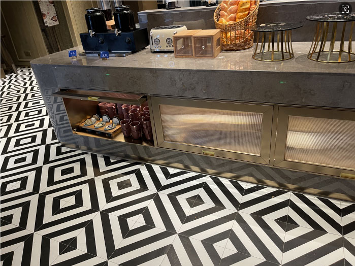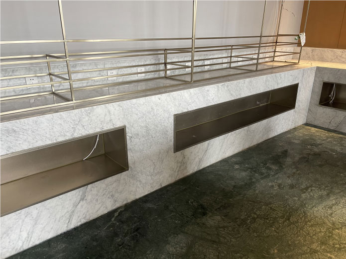 早餐區(qū)窄邊框電鍍304不銹鋼置物架,施工前后對比