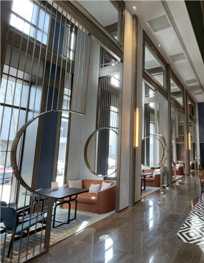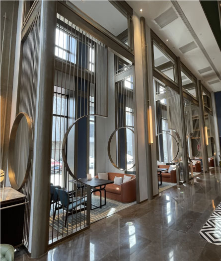 大廳圓形鏤空不銹鋼屏風打造出一個個相互聯系卻又相對獨立的空間