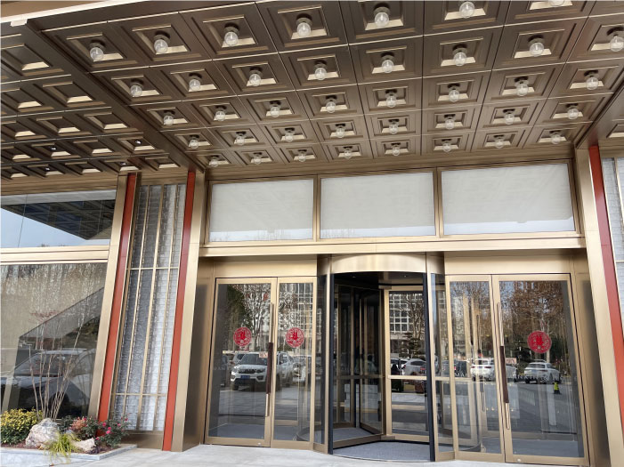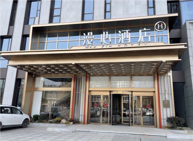漫心酒店不銹鋼定制門頭和不銹鋼自動旋轉門