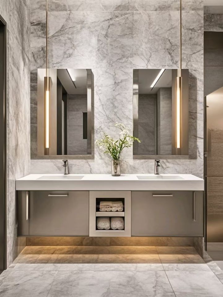 其設(shè)計(jì)風(fēng)格簡約大氣,線條流暢,既展現(xiàn)出現(xiàn)代時(shí)尚的美感,又能與各種裝修風(fēng)格完美融合。無論是簡約現(xiàn)代風(fēng)、北歐風(fēng)還是豪華歐式風(fēng),明鉑爾浴室櫥柜都能成為浴室中的點(diǎn)睛之筆。